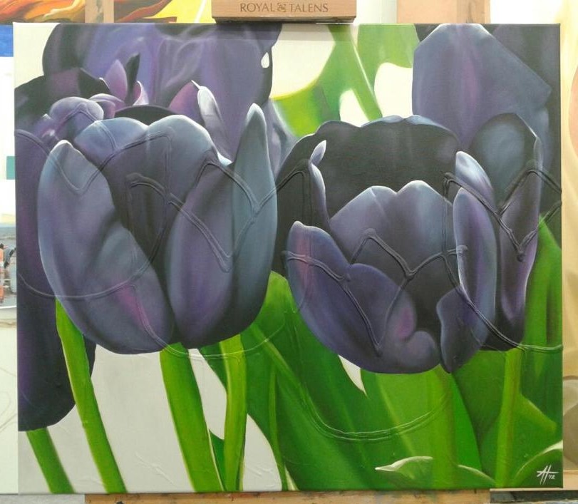 Zwarte Tulpen, 40×50 olieverf, privé collectie